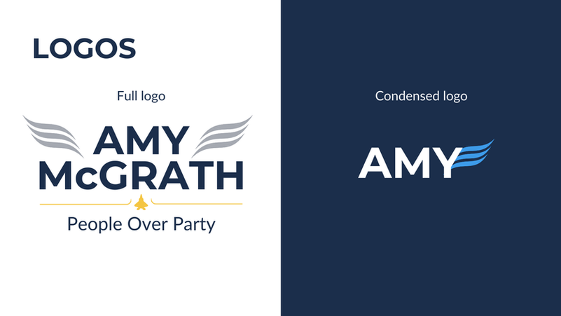 Brand kit for Amy McGrath including typography, colors, and logos used for pitch only.